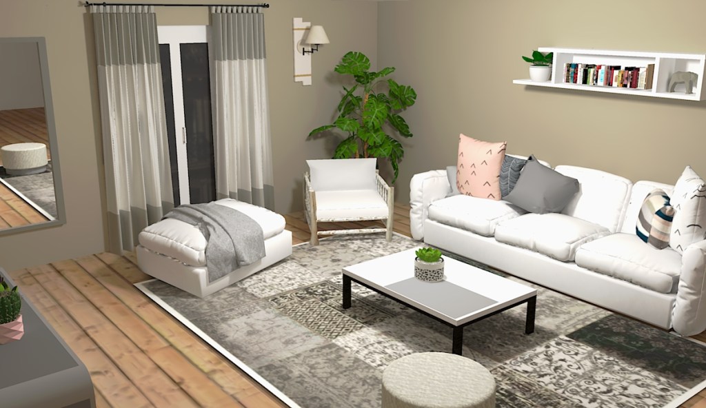 - Plusieurs vues 3D de votre intérieur aménagé, décoré et mis en lumière