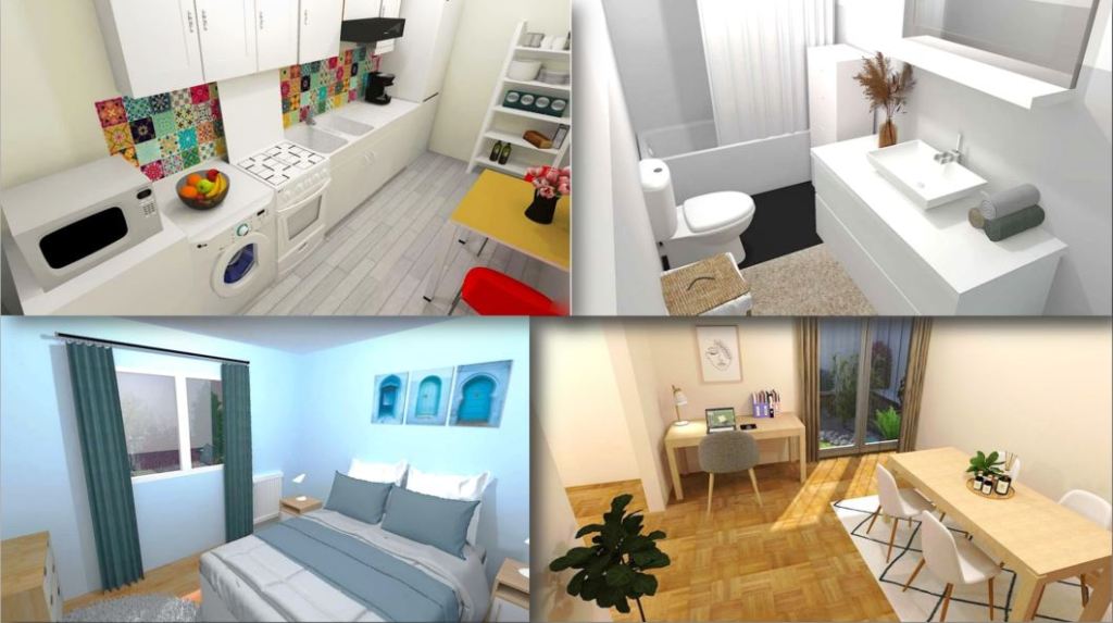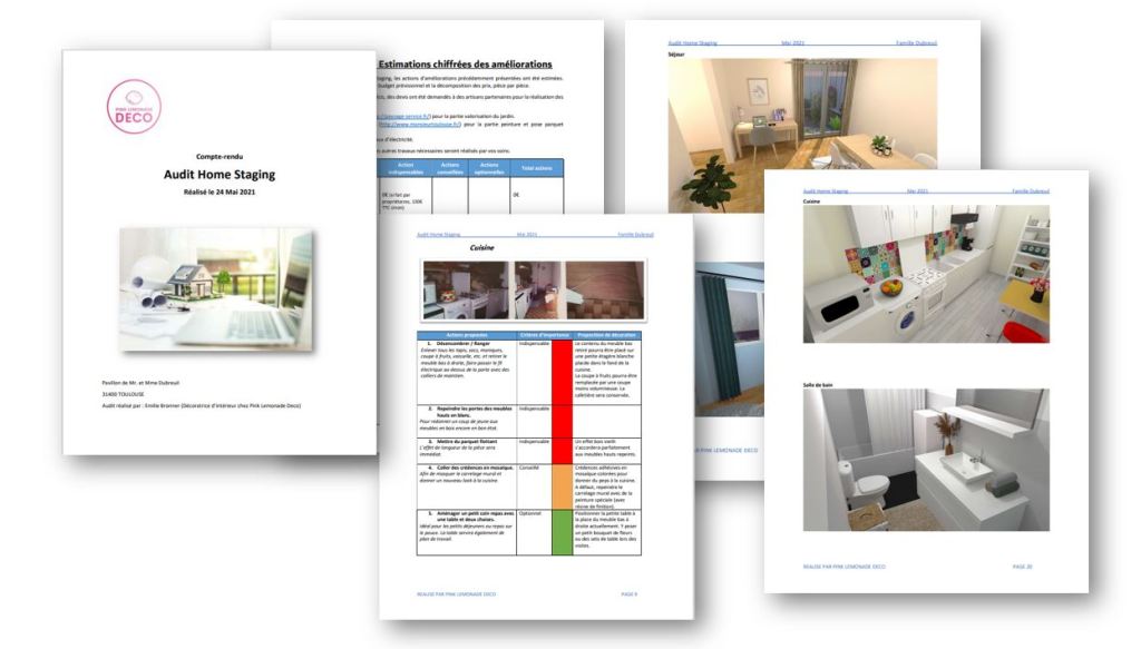 - liste détaillées des améliorations à faire avec ordre de priorité, estimation du coût de chaque amélioration, plusieurs vues 3D de votre intérieur post-travaux aménagé, décoré et mis en lumière.